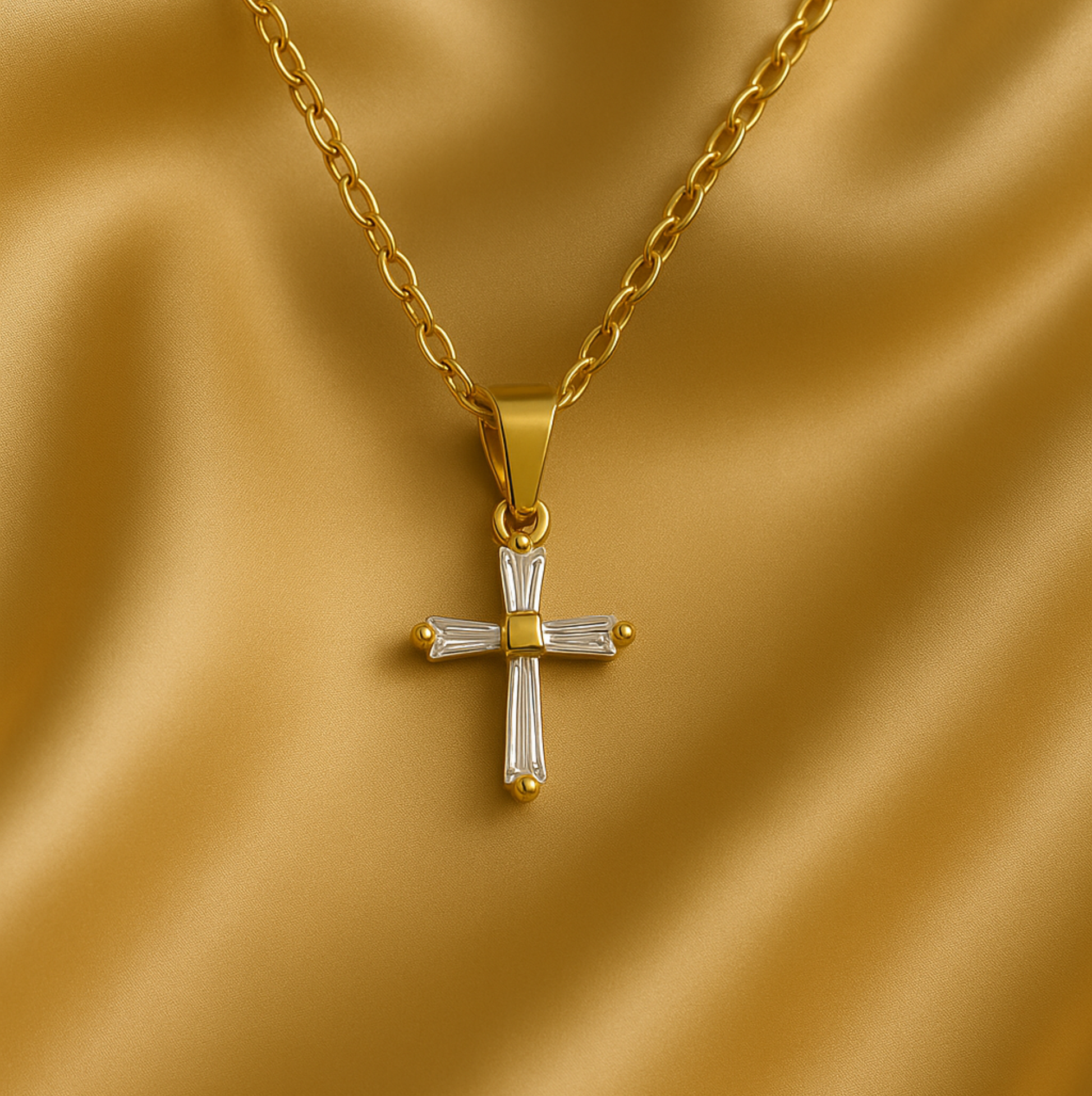 L’équilibre parfait entre délicatesse et éclat. Sublime incarne l’essence d’une foi discrète mais rayonnante. Sa croix finement dessinée marie avec subtilité les lignes dorées et les reflets cristal, pour une pièce qui capte la lumière avec grâce.